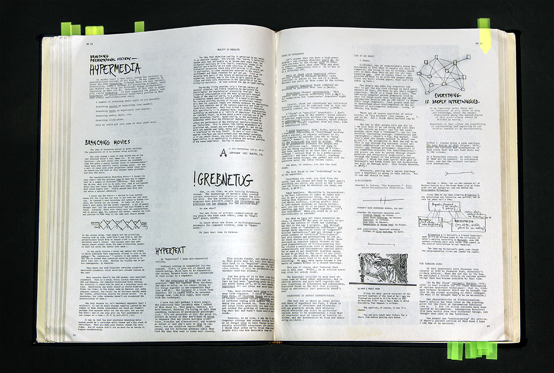 This work reappropriates images from Ted Nelson’s (a early pionner of personal computing and the Internet) seminal self- published book Computer Lib/Dream Machines, released in 1974. I would go on to explore Nelson’s work and its legacy in further detail in the text Possiplex, commissioned by MAP magazine and published in Endnotes, August 2016.